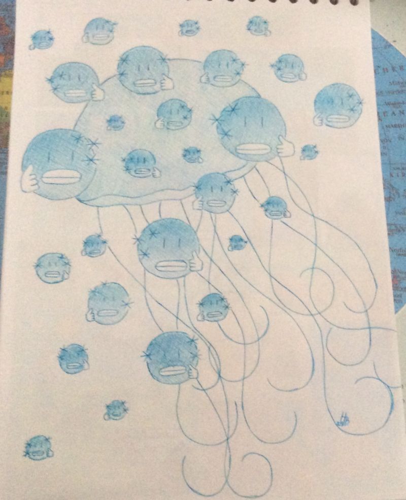 Na tej risbi sem skupaj narisala te tri emojije: :thumbsup:🥶(ne nejdem meduze, upsi)