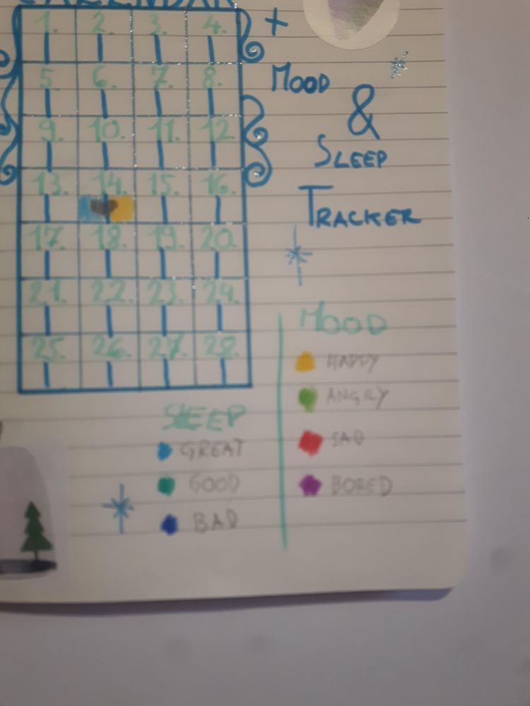 Tu je 2. naloga. Se opravičujem za motno sliko, me telefon zafrkava. Sem praktično 1. nalogi dodala še sleep in mood tracker. Zanima me samo kakšen je urnik objavljanja za šolo bujo?