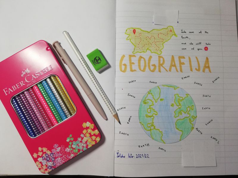 Jaz sem danes urejala naslovnico za moj zvezek od geografije :earth_africa::blue_book: