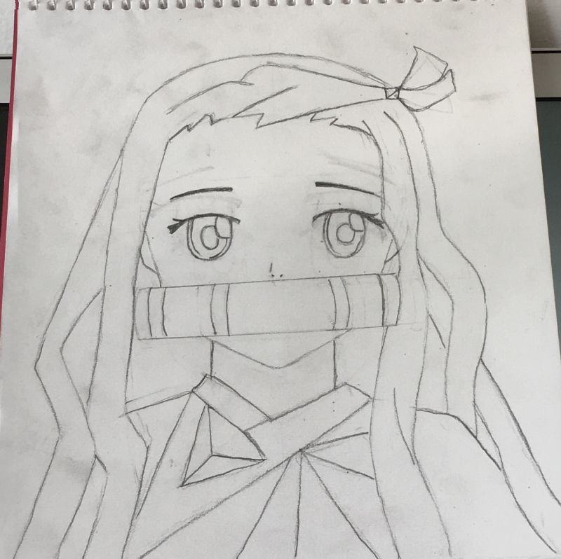 narisala sem nezuko iz demon slayerya. velikokrat sem se zmotila in se to vidi na sliki. drugače pa sem zelo ponosna na sliko.