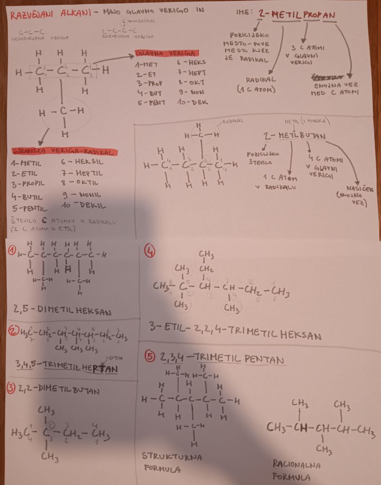 to so vaje za te razvejane alkane. ti mas narisan alkan in pol probej sama napisat njegovo ime (in pol poglej ce si prou). al mas pa napisano ime pa probej sama narisat strukturno formulo.
