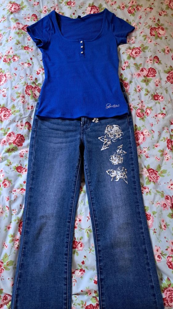 No, tole je moj prvoseptemberski outfit. Hlace so iz Lelosi trgovine, majica pa iz Guessa.