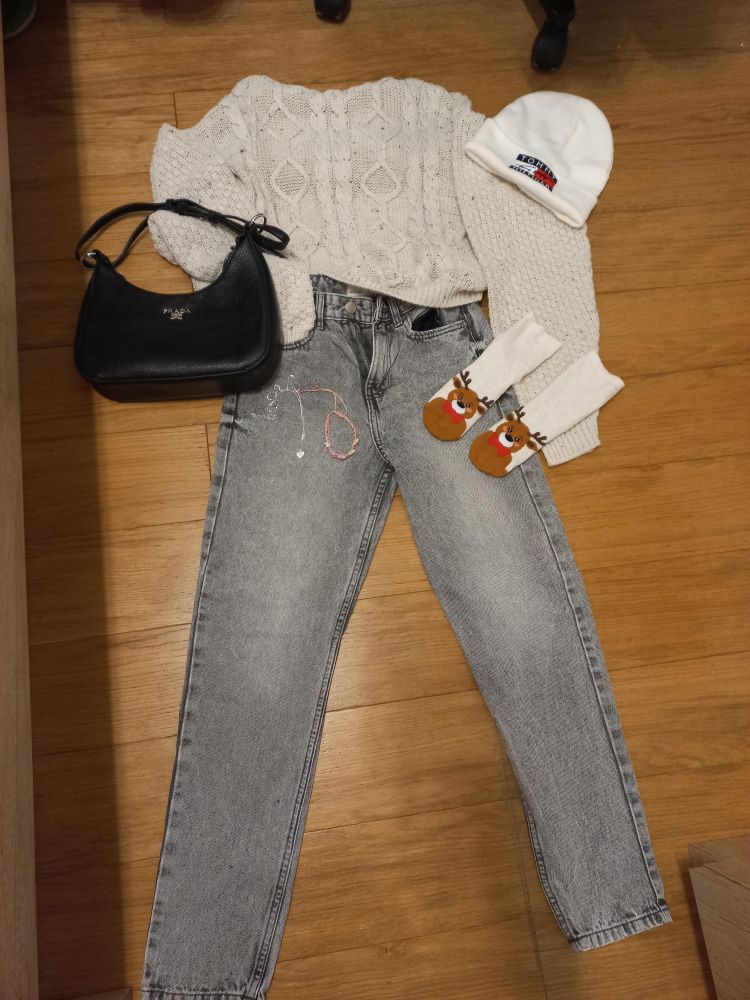 ful je lep, lovam pulover, pa hlače. Pa te nogavice dajejo tak x-mas vibe, vse skupi ful paše.