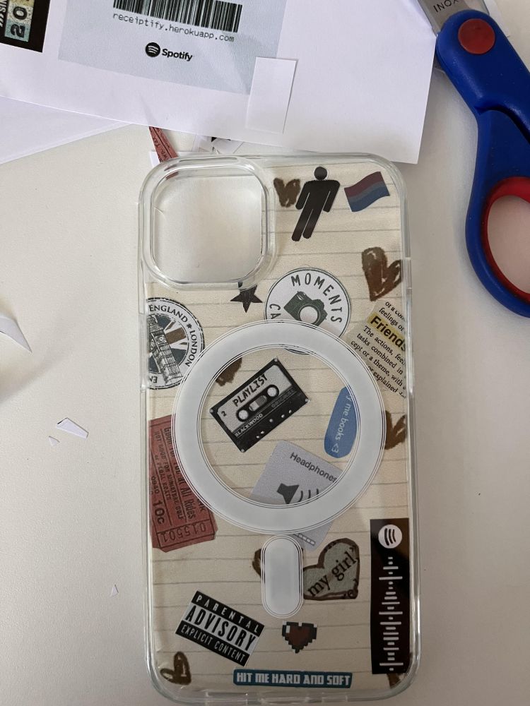 js sm dobla nov telefon za bitmo in tale ovitek. in itak mi je bil prazen ovitek boring tkoda sm vzela list papirja, gor nalimala tele stvarce in tole je koncni izdelek: