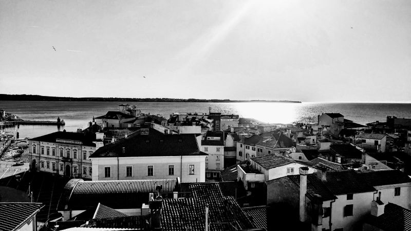 vem, da je že moja sestrca objavla slike (pig lover), ampak sm se odločla, da bom vseen objavla, kr je ta itak črno bela tk da je čist drgač. pač to je pogled dol iz une cerkvice na piran.
