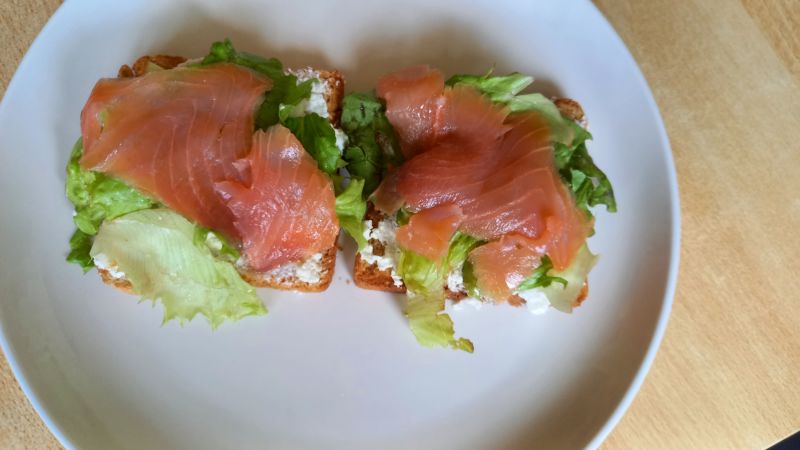 polnozrnat kruh, lahka skuta, zelena solata, dimljen losos.:sparkling_heart: