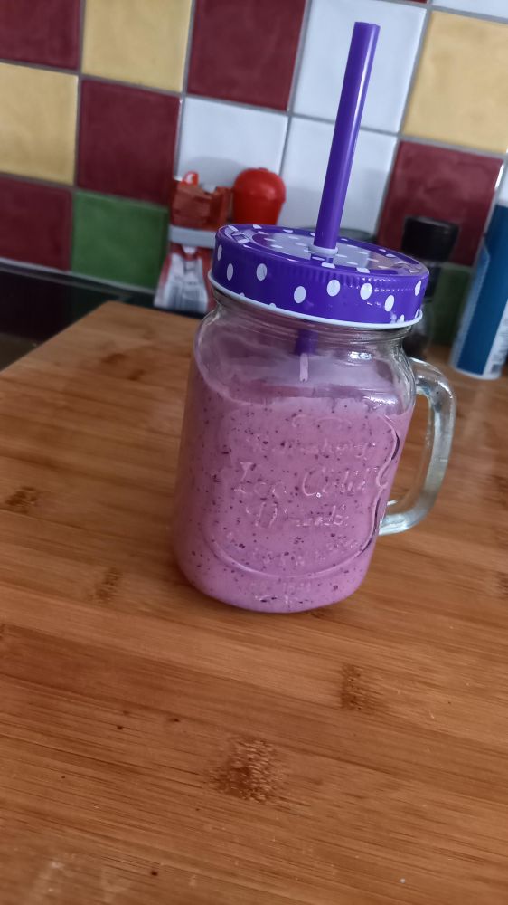 gozdno sadje (zmrznjeno ali sveže) + mleko (katerokoli) + dve žlici puste skute