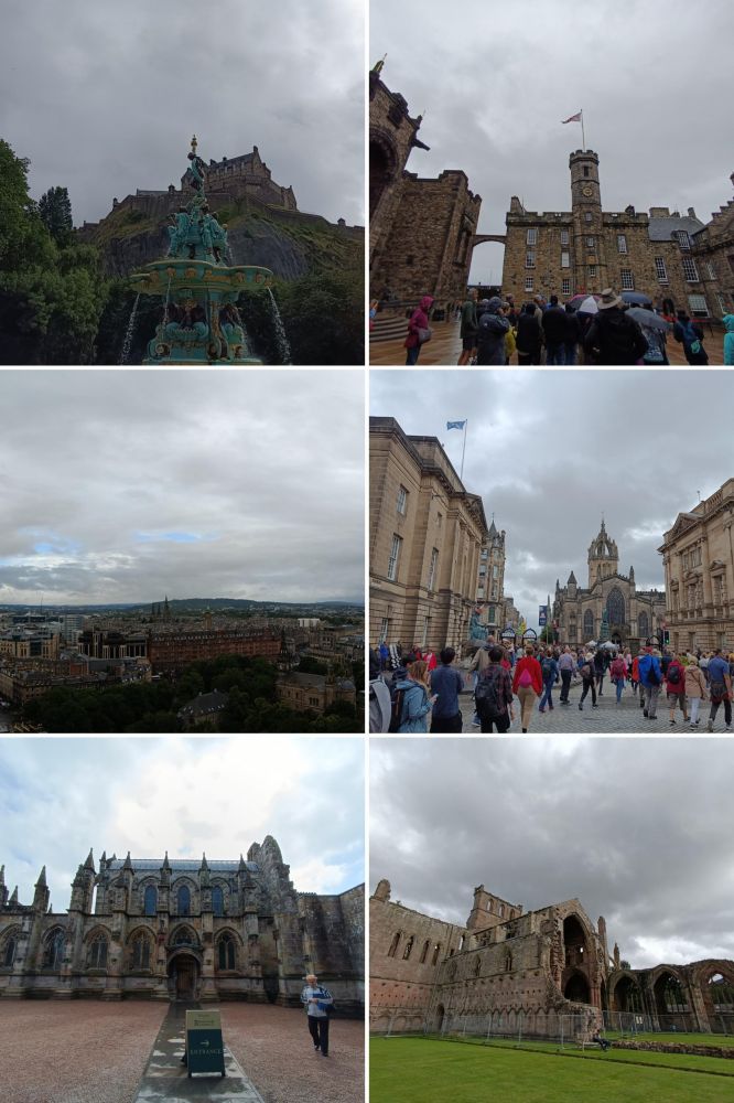Po zajtrku smo se iz Glasgowa odpeljali proti Edinburghu. Najprej smo šli na Edinburghški grad - *b*sliki zgoraj*b*. Mene malo spominja na Ljubljanskega, edino je manj okrašen. Notri greš lahko pogledat en muzej, eno sobo, en spomenik in kronjske dragulje :heart_eyes:, ki jih ne smeš fotkati. Je pa zelo lep razgled na mesto - *b*slika druga vrsta levo*b*.