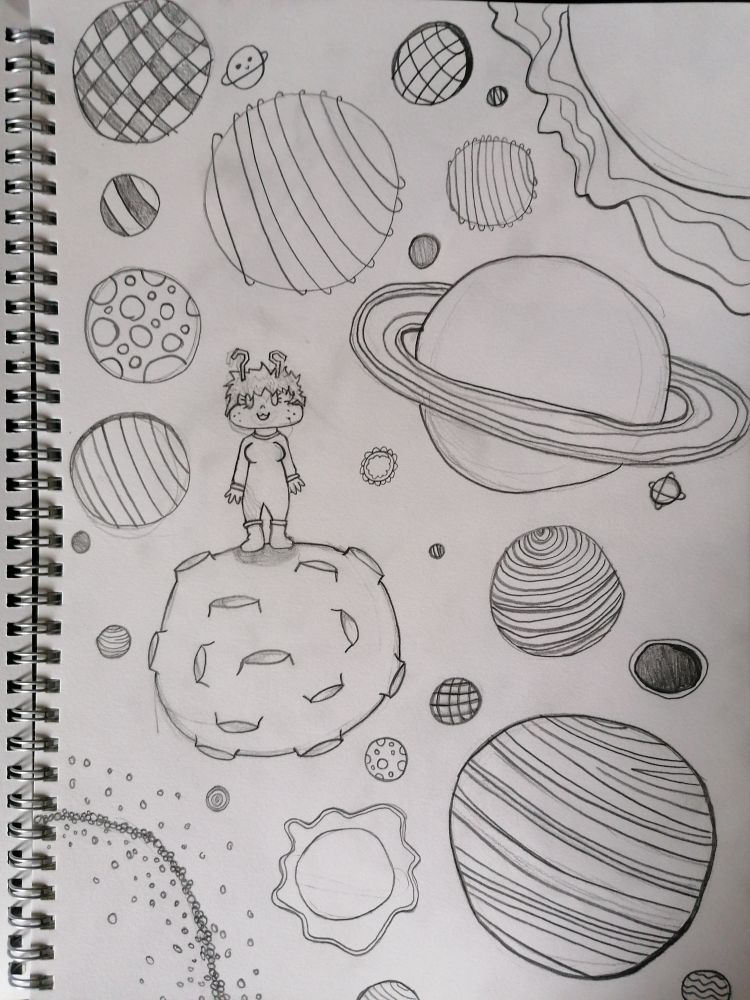 Narisala sem My hero academia mino v vesolju. Ima čist svoj planet na katerem obiskuje svoje sorodnike in prijatelje. :joy:. To je moj stil risanja. Ta stil je nekak poseben, ker vsi moji caracterji zgledajo kot hrčki:joy::joy:. Upam, da vam je všeč.