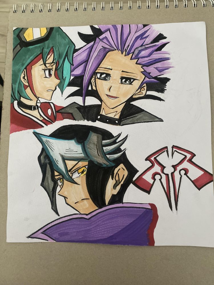 tukaj sem narisala sliko iz Yu-gi-oh arc V mogoče ste gledali ko ste bili mlajši ker je bila na TVju no saj je še zmeraj ampak bolj po redko.....🥲🥲🥲 btw ta serija od Yu gi oha je zakon (priporočam če maste radi animeje)🥳