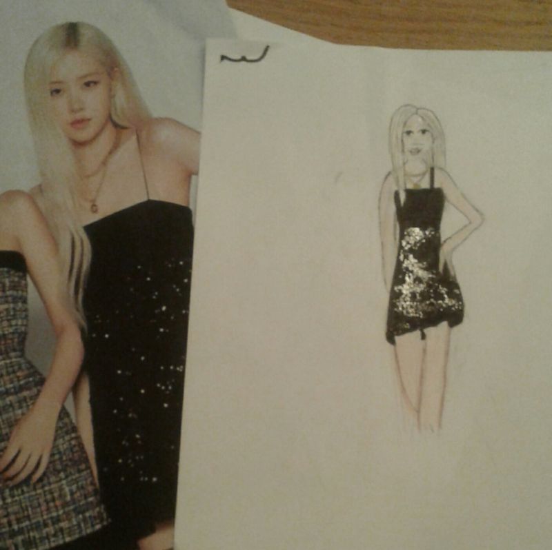 hja lol narisala sem Rose iz BLACKPINK in za inspiracijo uporabila pilov poster. plis ne omenjat kako sem zasrala njen lep obraz in da sta roki zelo čudni. drugače se ni zdi obleka kar ok narisana.