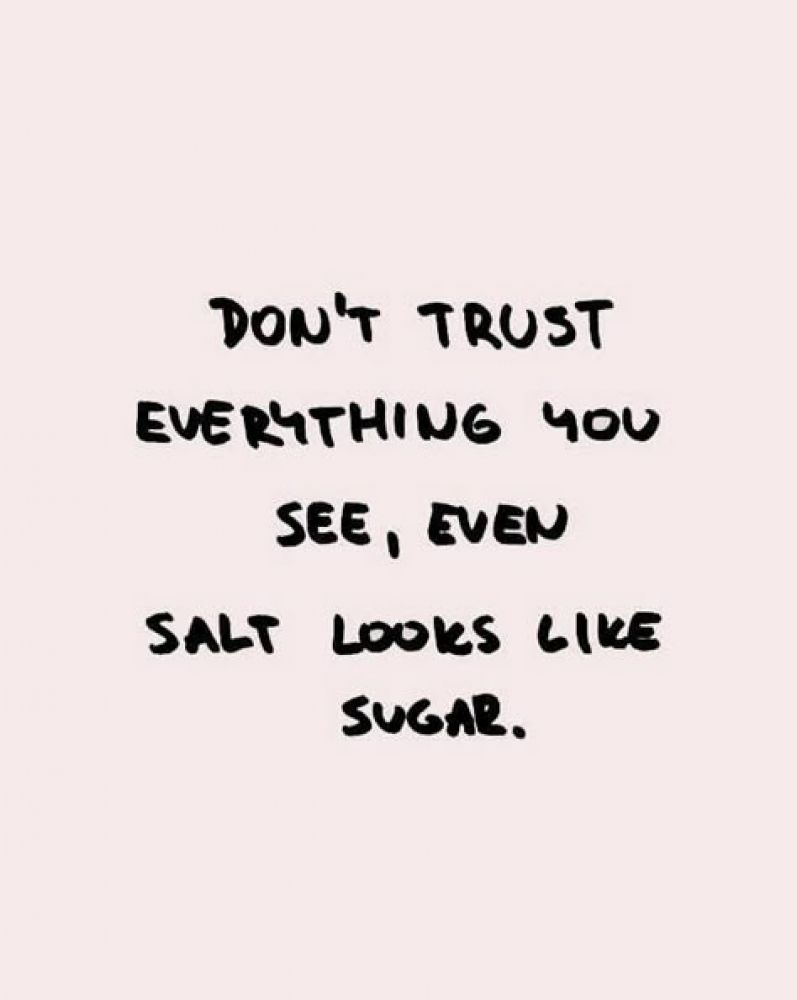 don't trust evriting you see, even salt loks like sugar.Lepo<3