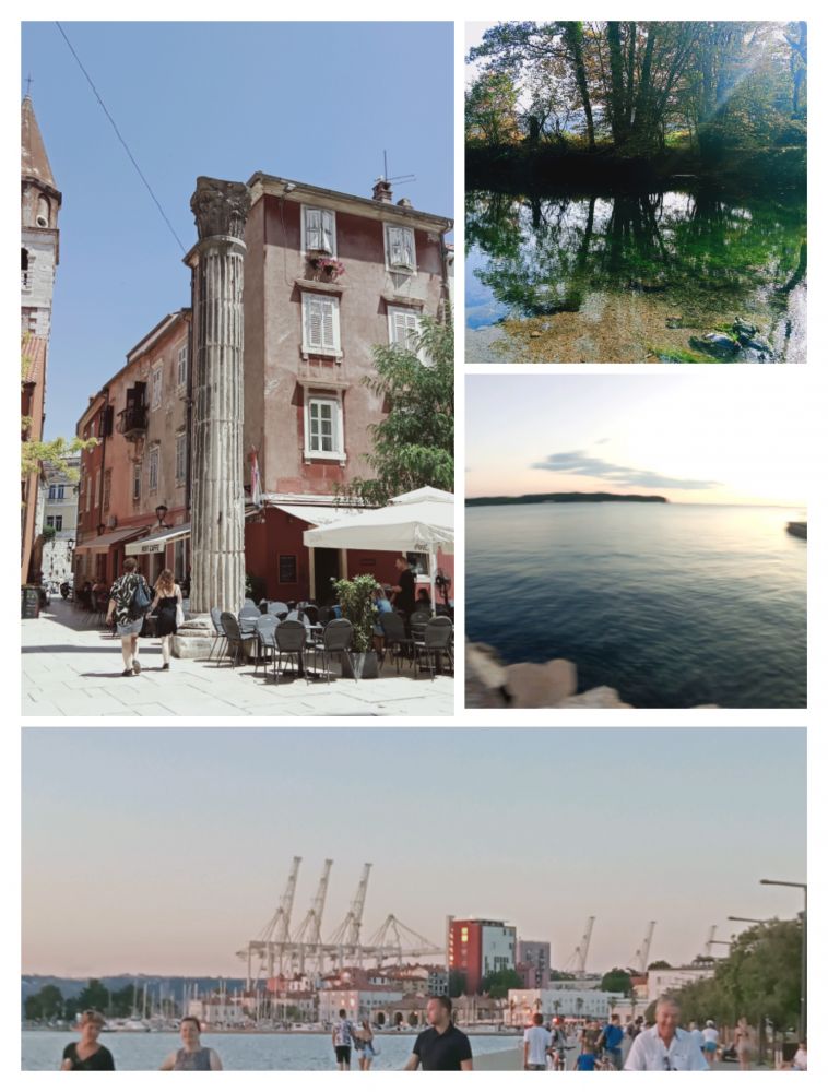 objavil sem drugi del našega potovanja in spominih po poletju. Spomnil sem se, da bi slike lahko še opisal. Prva (največja) slika je bila posneta v Zadarju. Zraven nje sta dve manjši sliki in sicer izvir reke Krke ter slika morja, iz našaga campa. Zadnja slika pa je posneta na mestnem sprehajališču v Kopro.