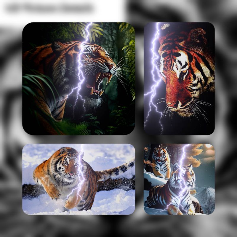 Moja najljubša živala je tiger, zato sem naredila kolaž. Dodala sem strele, pa povejte, če bi se vam zdelo boljš, da je brez njih. Pa če želite, lahko poveste katero žival si želite da še naredim.:hugging::hugging::relaxed::relaxed: