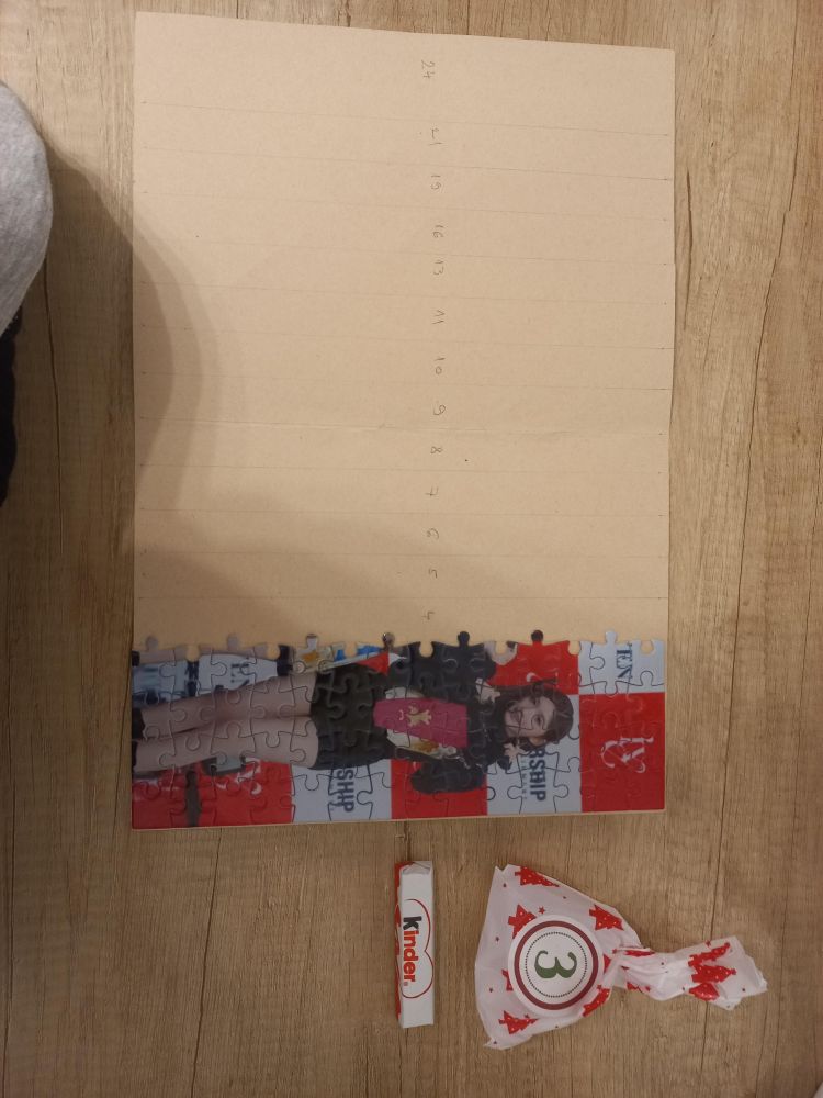 Danes sem v koledarčku dobila Kinder čokoladico(lovammm guyss<33) in pa nov delček sestavljanke:kissing_closed_eyes: Upam, da vam je všeč in se slišimo jutriii:hugging::sparkles: aja pa prosimm napišite, če imate še kakšne ideje, da bi dodala semle, ker se mi zdi samo opisovanje kaj sem dobila v koledarčku premalo:) hvalaaa:stuck_out_tongue_closed_eyes:rada vs mammmm:kissing_heart: