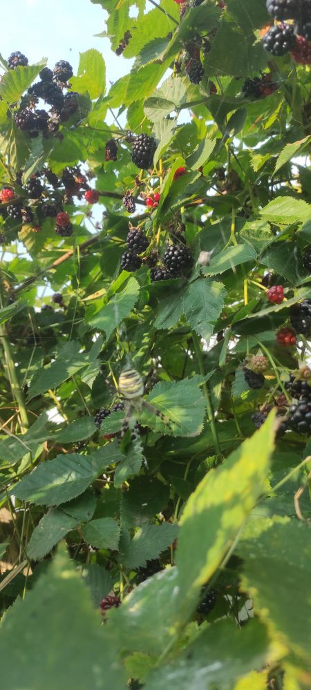 en lep pajčji :spider: pozdrav iz našega vrta. Tole je osji pajek, samica se pretvarja da je osa in je velika okrog 15 mm. sicer je nestrupen in ne piči...je pa kr velik:sweat_smile:
