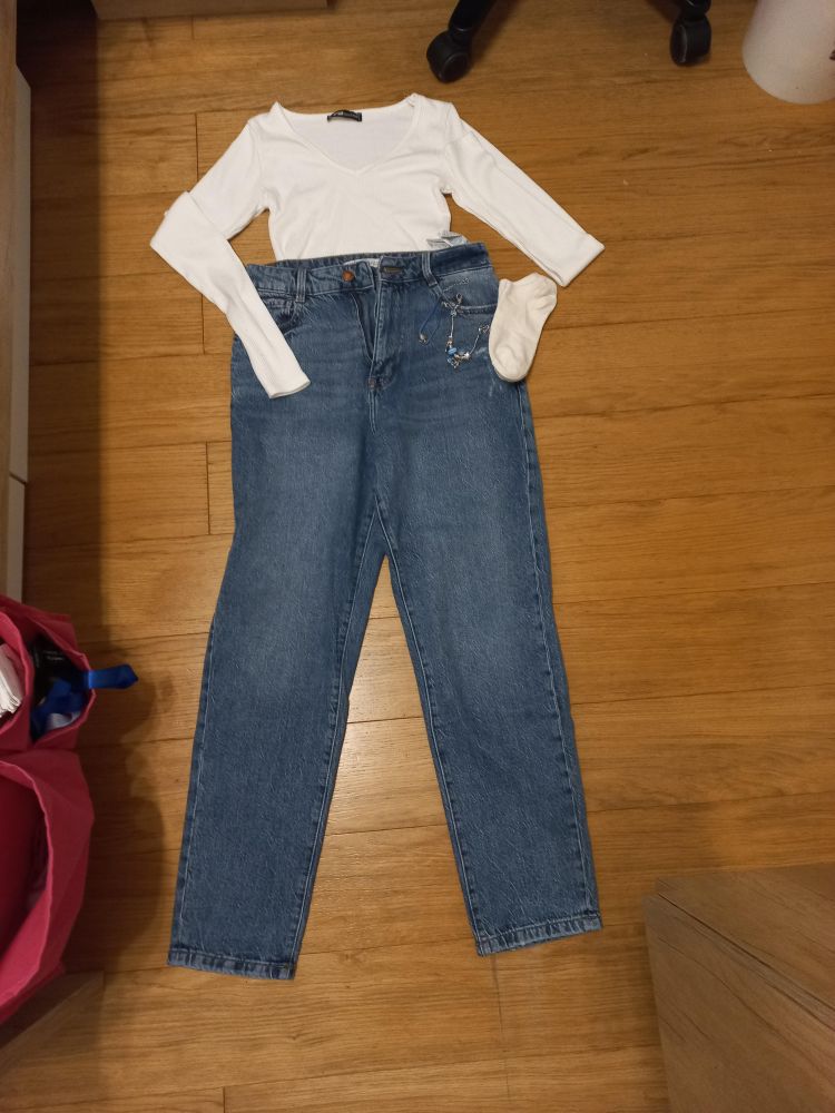 ~Jeans/Denim: Zara, size:36(kle zgledajo hlače tokk gromozanske napram majci, sm dodala še pas, sam ga ni na slikici)