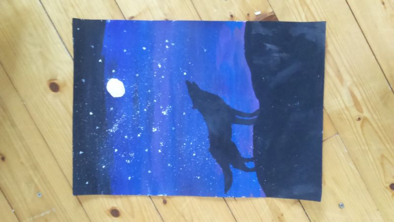 Wolfya je narisala moja mami jaz pa na podlagi risbe volkca naredila šablono volka in narisala tole...