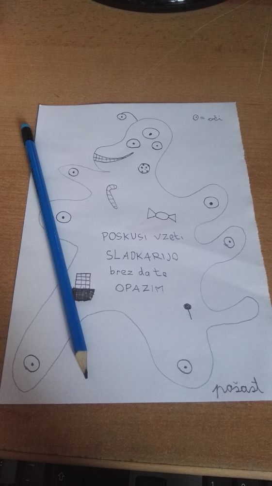ojla evo narisala sem pošast iz sladkorne pene. ima ogromno oči. upam da je ok