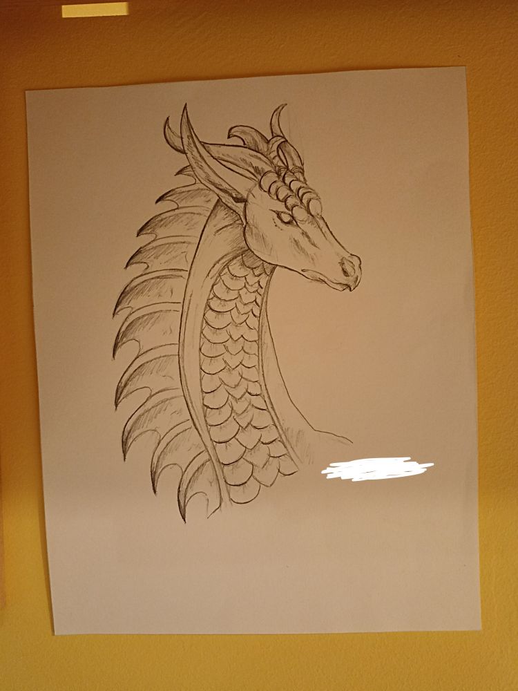 in na srečo je bila učilnica za likovno prosta, pa sem si vzela teh 45 min za risbo zmaja. :)