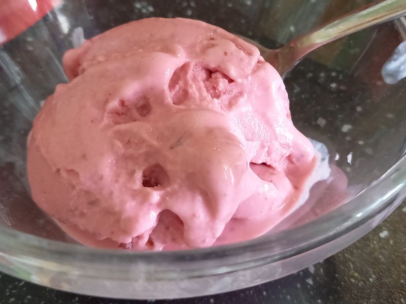 Mislim, jaz imam raje, da jemalo več okusa po jogurtu. Lahko pa seveda, daš več višenj, da je po njih več okusa. Zdaj več ne delam z višnjami, ampak uporabim mešano gozdno zmrznjeno sadje (brez ribeza, ker bodo potem v sladoledu koščice), potem pa dam notri še sveže borovnice, da nastane vijolične barve. 💜