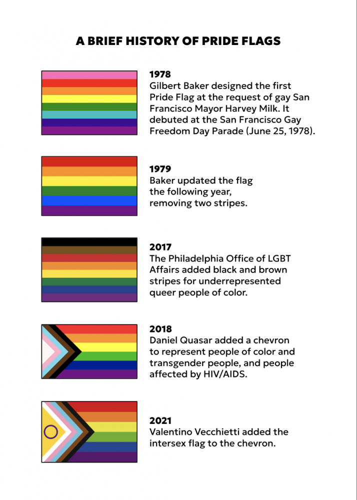 Tej zastavi se reče "Progress pride flag". Zakaj? Trikotnik na levi strani predstavlja "progress", napredek na področju LGBTQ+ pravic in enakost v svetu. Sporoča, da nas vse kljub vsem izboljšavam na tem področju čaka še veliko dela, da bomo dosegli popolno enakost v svetu. Sporoča, da je treba napredek še nardit/doseč.
