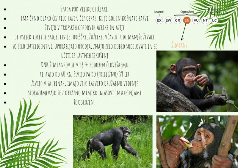Danes je prišel na vrsto naš najbljižji (živalski) sorodnik, s kterim si delimo kar 98% DNK-ja. Veliko, ne?