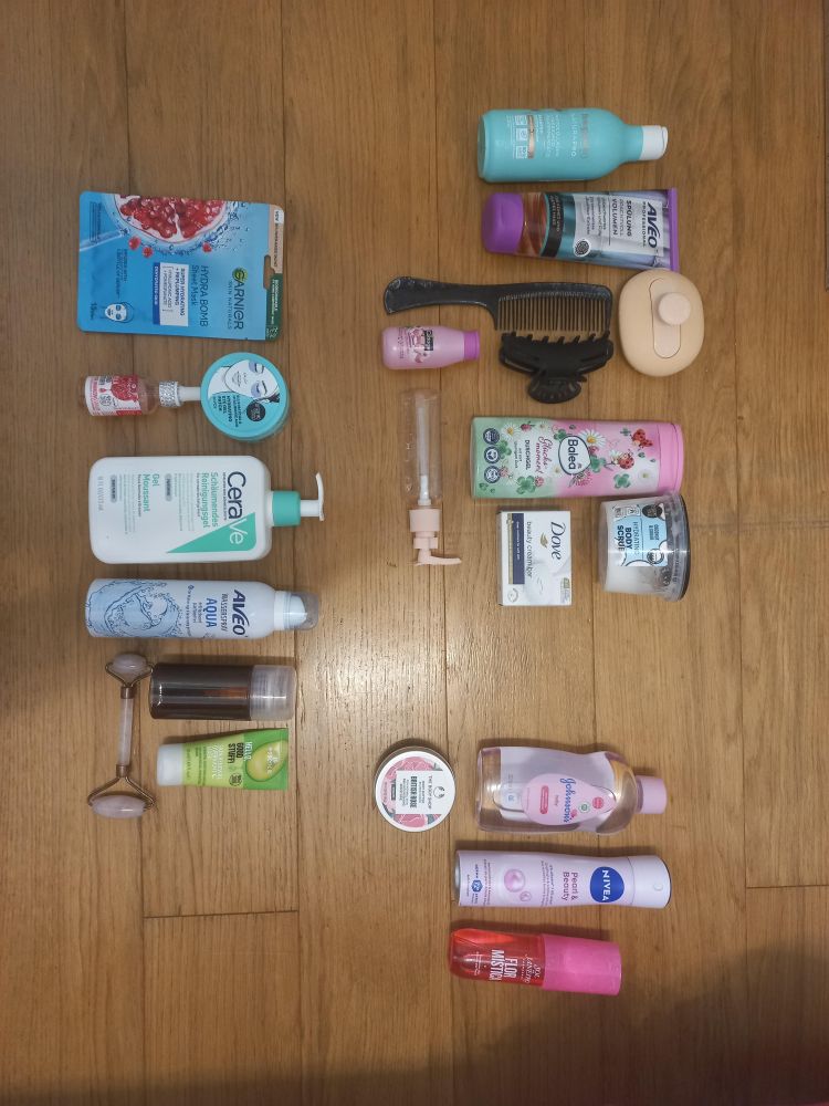 *roza*Bodycare:*roza* No pa gremo na telo, prvo uporabim tole Dove beauty bar s takim naravnim/milky vonjem (trdo milo), nato pa še gel za tuširanje od znamke Balea s sladkim vonjem. Nato uporabim scrub, danes je ta z sweet&coconut vonjem, ampak je v večini samo sladek. Nato sledi shaving, za to uporabim to majhno roza 'milo', ki je bolj tak milky, z vonjem marshmallows, tkoda sweet:) Sledi še zadnji step in to je milo z aloe vero (v tisti prozorni steklenički), ki ga uporabljam za back acne.
