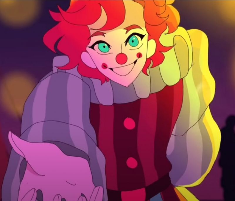Pred mano se pojavi veselo nasmejan mlad klovn in mi ponudi roko. Kar sam me prime za roko, nato pa me povleče, da vstanem in me zavrti, kot, da sva na nekem plesu.