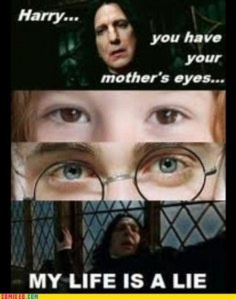 (Če kdo ni gledal filma, fora je to, da bi naj harry in Lily imela zelene oči,