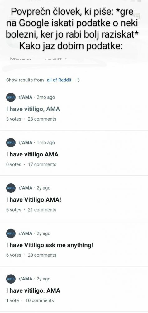 r/AMA je skupnost na Redditu kjer nekdo naredi objavo o nečem (pogosto nekaj kar se bo drugim zdelo zanimivo) , in pol jih drugi sprašujejo vprašanja, oseba, ki je to objavila, pa odgovarja na njih.