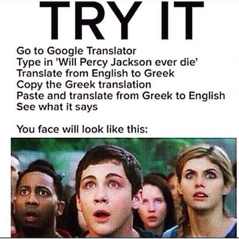 Jaaaaa to dejankso deluje in se čisto strinjam z google translatom! OBOŽUJEM Percy Jacksona:heart::heart::heart::heart::heart::heart::heart::heart: