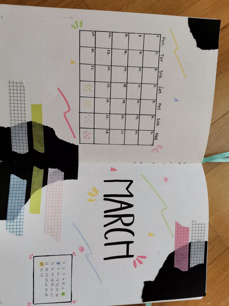 tole je moj bullet journal setup za marec.