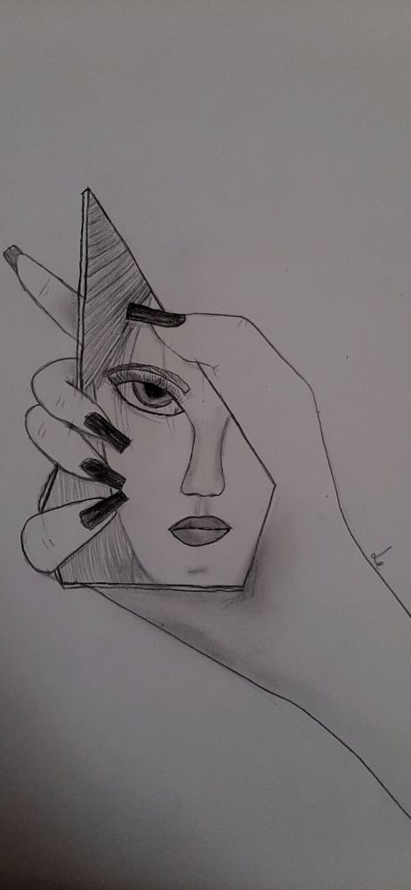 Najprej se opravičujem, ker so moje sposobnosti risanja nosov, ust in obrvi (na tej sliki tud oči) grozne. Slika ne predstavla le mene ampak na splošno vse najstnice/najstnike, ki se primerjajo z drugimi in ne marajo svojega izgleda. Na sebi vidijo le svoje pomanklivosti in ničesar lepega. Ampak dragi moji (:joy:) lepota je v čisto vsakem od nas.