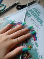 najprej rabš običn list ki ga pobarvaš na kiro koli barvo hočeš. Potem izrežeš tako da se bo oblika prilegala tvojim nohtom. malo jih zarolaš, da niso čist ravni in prelakiraš s prozornim ...