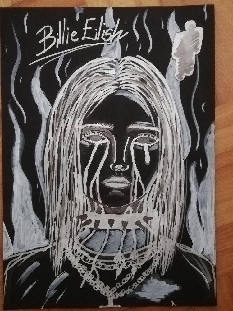 Torej kle je ena moja risba billie eilish. Probala sm jo narisat pa mi je vzela kr neki casa. Upam, da vam je vsec
