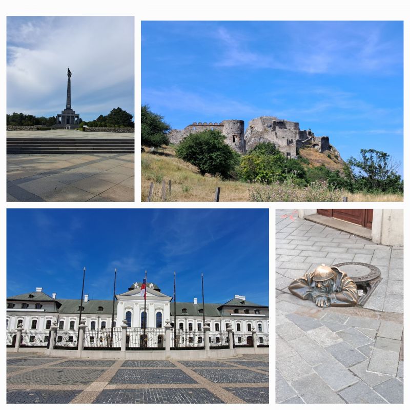 Kak smo? Jst sem šla z družino na 3 dnevni izlet po Bratislavi. Dans sm naredla kr kolaž, ker je slik blo preveč:grin::blush: Na njem so parlament, grad Devín, spomenik padlim ruskim vojakom. Tisti človek, ki gleda iz kanalizacije pa je eden izmed posebnosti ulice v Bratislavi.