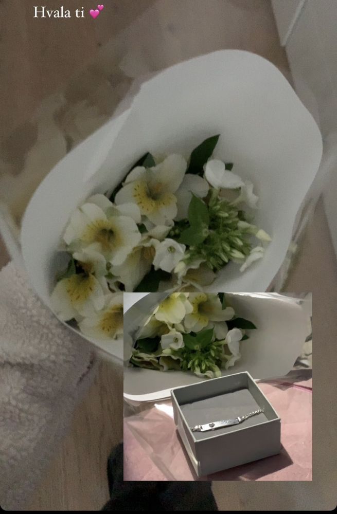 neki dni nazaj sm mela rd in to mi je fnt podariu haha <3. Srebrna zapestnca z najinimi imeni pa roze <33
