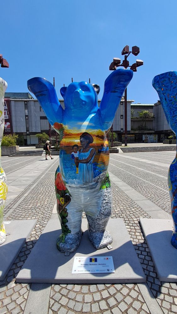 Ko smo šli z morja smo se ustavili še v Ljubljani, da bi si ogledali razstavo teh prečudovitih medvedkov,ki predstavljajo povezanost vseh držav. Pred perlamentom stoji 145 medvedov. Veliki so 2 metra. Tale tule na sliki je meni najbolj ušeč. Prihaja iz Barbadosa.