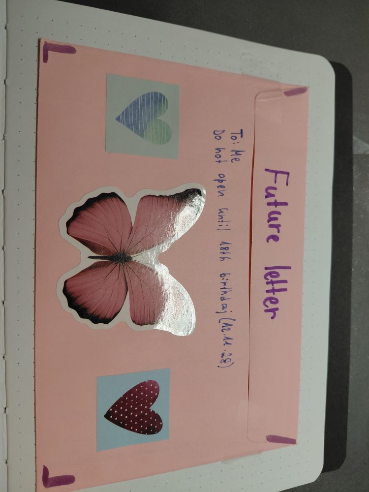 v bistvu sem zdaj trenutno stara 15 let in to pismo bom prebrala ko bom stara 18 let :) vrjetno poznate tole zadevo, ko napišeš *b*svojemu future SELFU pismo*b* in ga odpreš oz. prebereš čez določen čas (ne prej)<33 upam, da ne izgubim pisma do 18. rojstenga dneva :D🤭