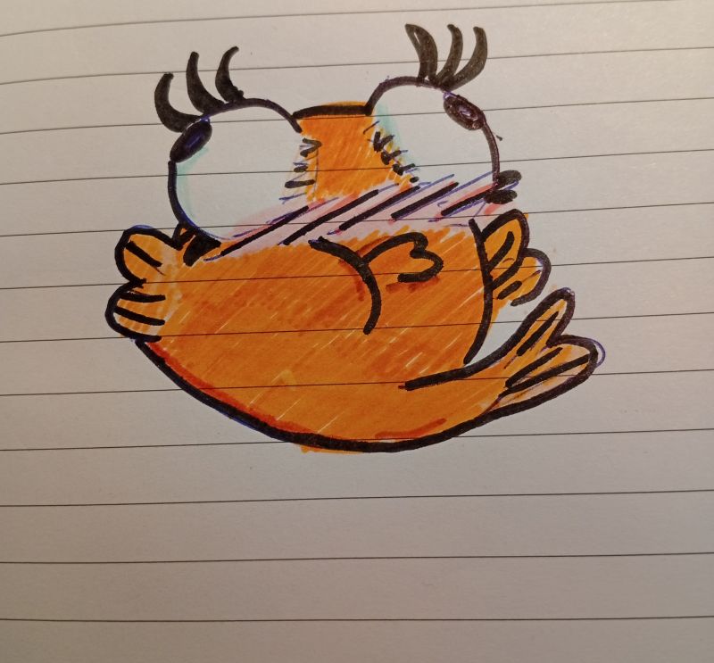 Strip bo kmalu, do takrat pa ena res čudna ribica.:fishing_pole_and_fish::stuck_out_tongue_winking_eye:Ps: vem, da ni lepo pobarvano