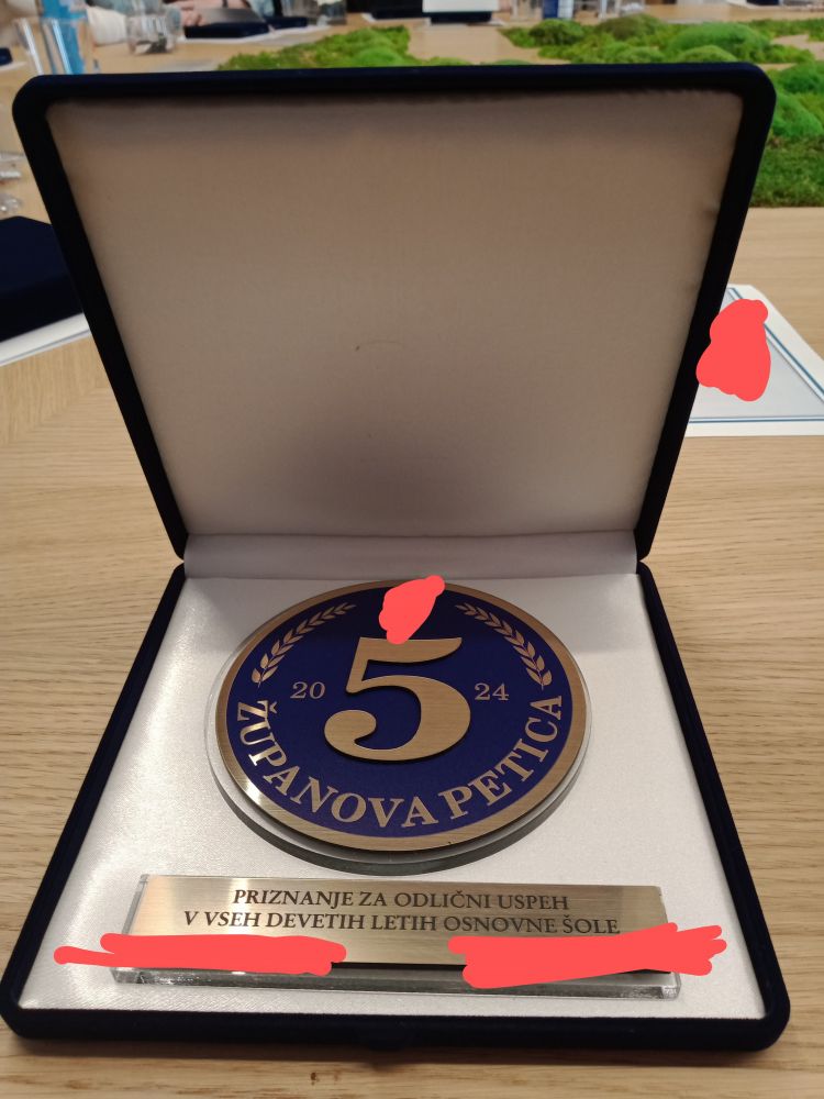 Spodaj pa še pripenjam tako škatlo, ki smo jo dobili odličnjaki pri županu(edin zakrila sem ime župana in občine, ker nočem met kakega Luskana pred vrati lol.)