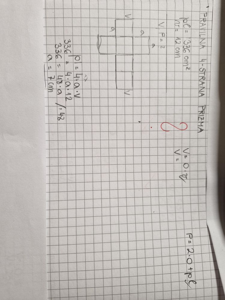 torej O dobiš da daš a na kvadrat torej O= 7x7= 49cm