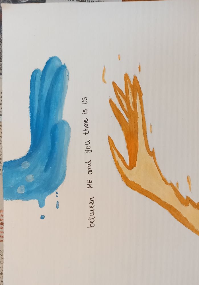 Hvalaa! Tko ful sm vesela da eden napiše malo več ku Samo ; lepo.... Tko sej je tudi uno prijazno sam ja You know...drgac ja je iz tistega filma čeprov ga nism gledala haha. Pač sm valda za preizkus likovne nadarjenosti in zato sm mogla uporabiti barvno kompozicijo ( nisem smela dati rdeče ampak oranžno zato so malo take barve). Edino kar je meni res grdo je pa ker nism mela dobrih copicov ( naslednji dan sem jih šla kupit) in so bli ku neke metle. In ja nisem mogla delat natančno tko da.... Papir se mi je na koncu že luscil ker sem mela tudi Slabe temperature.... Phaha Evo en dokaz da sm mela do malo nazaj doma slabo opremo za barvanje z temperami. Suhe barvice mam perfect tole pa jah... No Evo zdej je bols. Hvala glede pisave drgač! Tudi meni je kr lepa ;)