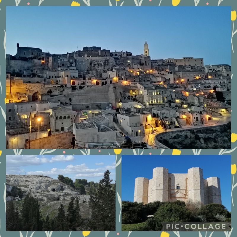 Evo tule je kolaž treh slik od včeraj. Na zgornji sliki je Matera na spodnji desni je grad na levi pa tisti kraj za katerega žal ne vem imena...