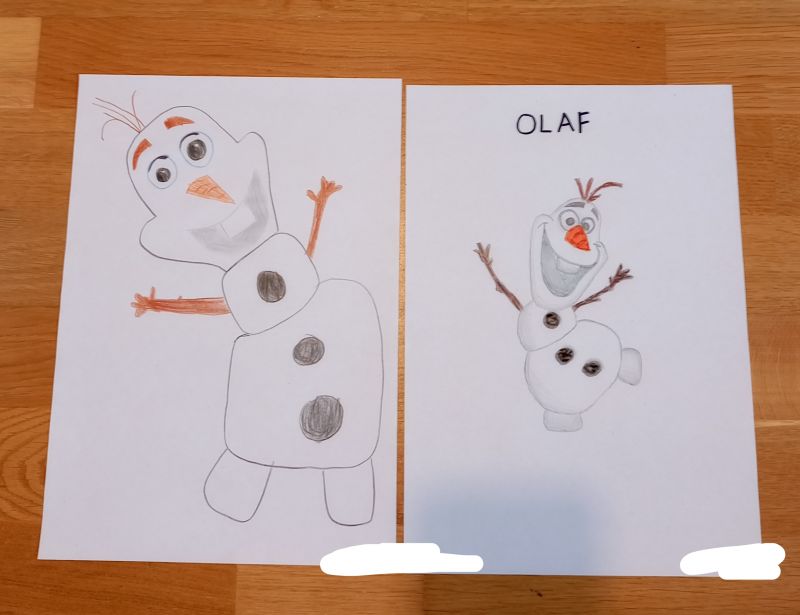 Prosili ste me ce objavim :sparkles:svoje risbice:sparkles: soooo tukaj imate sliko kjer sem risala olafa! Prvi olaf na levi je olaf, ki sem ga narisala kot mali frocek, deugi olaf pa je, ko sem ga risala ponovno ampak letos. Upam, da vam bo všeč:hugging:!