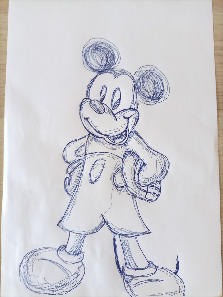 Spet ena moja risba. Tega mikija sem narisala vÄeraj med reklamami ko sem gledala skrito v raju prerisala pa sem ga iz skodelice ker sem pila ÄajÄeka. Sooo tukaj je :sparkles:rezultat:sparkles:!
