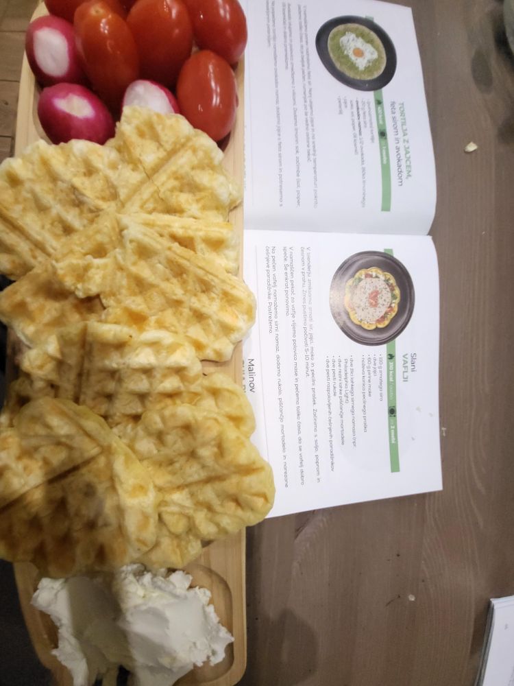 Zdej sm si za večerjo nardila take slane vafle. Ki so men osebno fulll dobri, zraven so še redkvice,paradajs in sirni namaz. Pa recept. Js sm napesto zrnatega sira dala navadnega.
