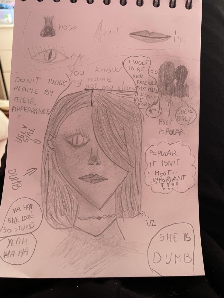 liz je punca, ki je stara 14. Zaradi tega ker ima mačje oko in ker ima drugačno ugo je noben nemara v njeni šoli. •[]• Ampak neka punca, ki je zelo popularna hoče biti njena prijateljica. Žau da nebi zgubila popularnosti noče priznati:( upam da vi niste v takem obdobju zdaj da vas noben nemara ker ste malo drugačni): kličejo pa jo po grdih imenih kot so nepametna, grda, nesramna... D: hvala pa še slikica: