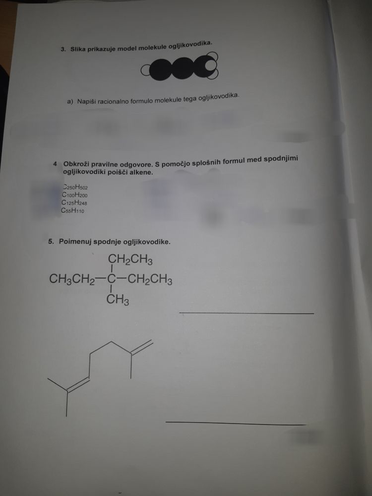 pri 3. nalogi so črni krogci ogljiki, beli pa vodiki, torej: